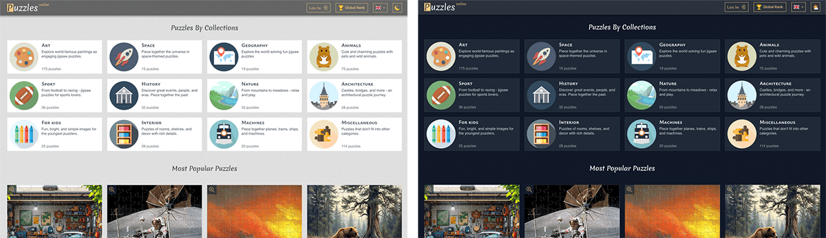Our priority is your comfort while solving online puzzles. That's why we are excited to introduce one of our most anticipated updates: our website now fully supports Dark Mode!